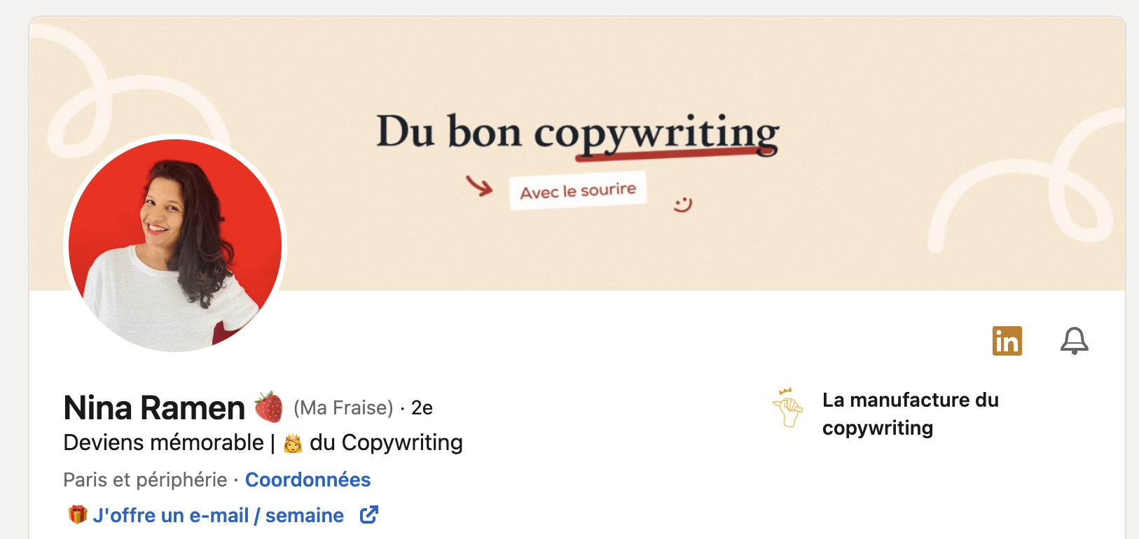 Le premier réflexe de votre cible, lorsqu'elle lira votre message, sera d'aller visiter votre profil pour en savoir plus sur vous et sur votre proposition de valeur.
